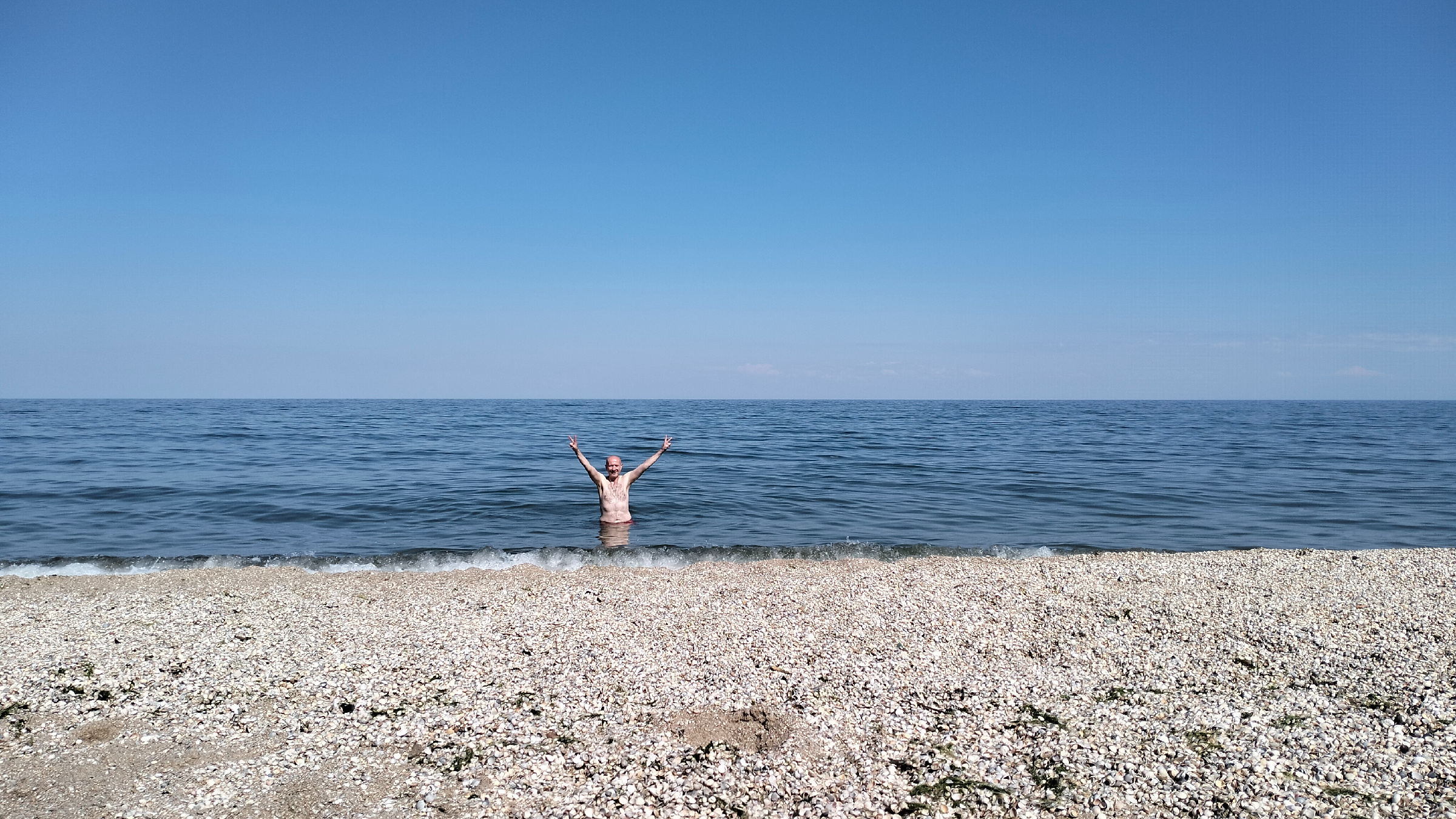 Чтобы заесть негативное впечатление, купили соленых азовских бычков, вкусной черешни, искупались на пляже-косе. Ласковое море, солнце, песок, но людей на пляже почти нет. Наши люди привыкли ходить крупными колонами. Все едут в широкие врата Крыма и Краснодарского края. А там везде давиловка и дороговизна.